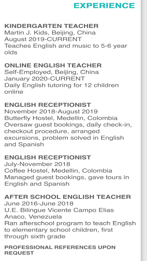 國籍: 德國 求職意向: 教師