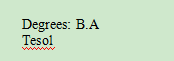 本科,有TESOL和教學(xué)經(jīng)驗(yàn) |