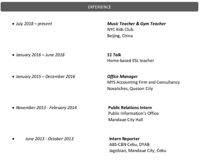國(guó)籍: 哥倫比亞 求職意向: 教師