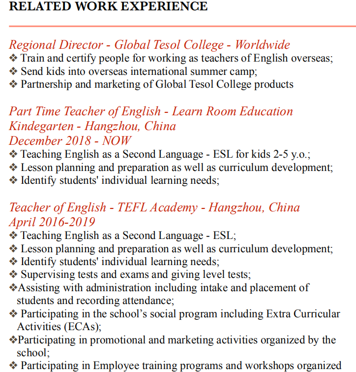 外交學(xué)有六年教學(xué)經(jīng)驗(yàn) 有TEDOL 本科 會漢語 |