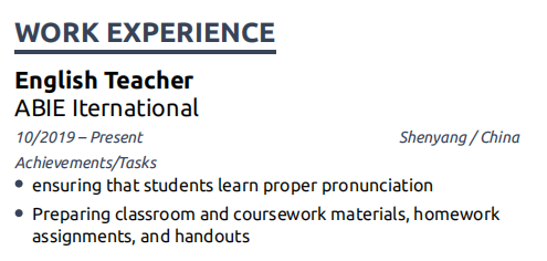 外教簡(jiǎn)歷