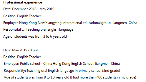 學歷: 本科 期望薪資: 3000-4000(Yuan/M)
