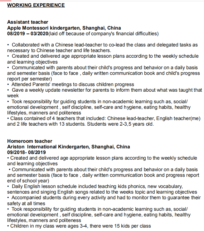 國(guó)籍: 德國(guó) 求職意向: 教師