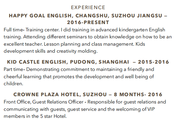 外教簡(jiǎn)歷