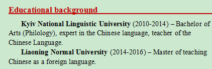 國籍: 俄羅斯 求職意向: 教師