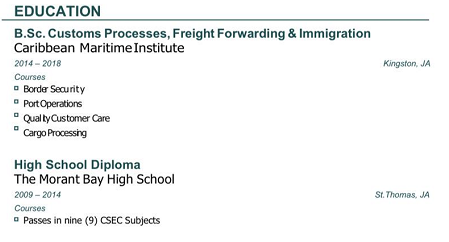 牙買加, 本科, 有經(jīng)驗(yàn), |