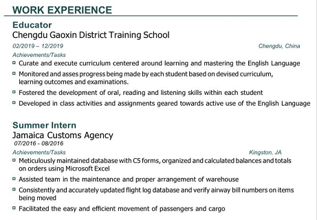 外教簡(jiǎn)歷