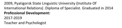 國(guó)籍: 俄羅斯 求職意向: 教師