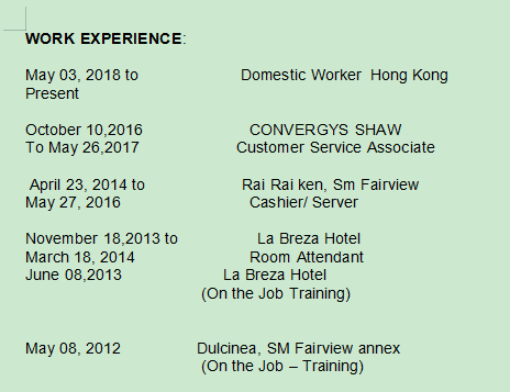 Liza+菲律賓女+本科+家政工人簽證(5月到期),希望辦理新的,已經(jīng)拿到解聘書+目前在香港,可盡快到崗 |