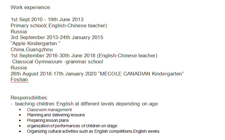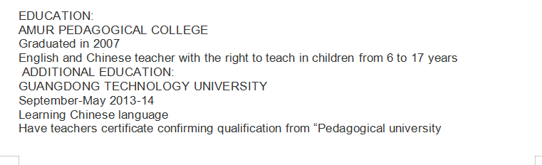 國(guó)籍: 俄羅斯 求職意向: 教師