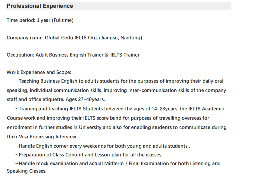 國籍: 其他 求職意向: 教師