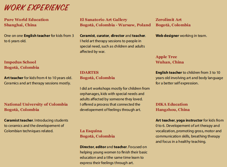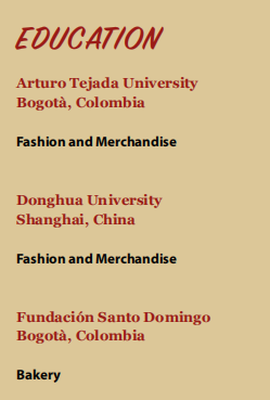 教育背景: 阿圖羅Tejada大學(xué) 波哥大,哥倫比亞 時(shí)尚和商品專業(yè)
