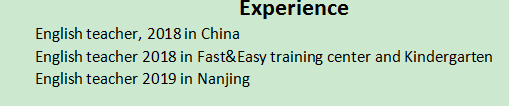 demo,介紹3年中國教學(xué)經(jīng)驗(yàn),學(xué)校類型,學(xué)生年齡,介紹教學(xué)方式,多種多樣--發(fā)音不錯,形象好