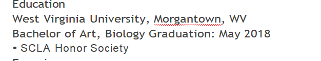 教育 西弗吉尼亞大學(xué),摩根敦,西弗吉尼亞大學(xué)生物科學(xué)學(xué)士學(xué)位,生物學(xué)畢業(yè):2018年5月 ?SCLA榮譽(yù)學(xué)會(huì) 上海瑞思國(guó)際學(xué)校 外籍老師| 2018年9月至2019年12月 ●為學(xué)生準(zhǔn)備和計(jì)劃的課程 ●教授基礎(chǔ),中級(jí)生物學(xué),英語(yǔ)和地理 |