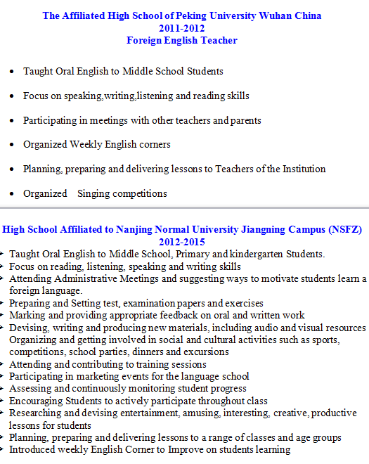 外教簡(jiǎn)歷