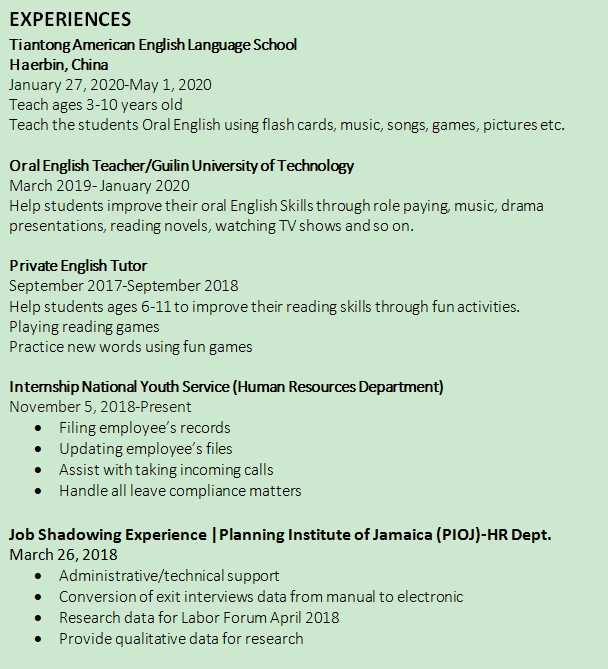 國(guó)籍: 巴哈馬 求職意向: 教師