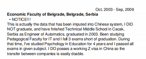 學(xué)歷: 本科 期望薪資: 8000-11000(Yuan/M)