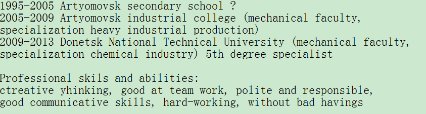 國(guó)籍: 烏克蘭 求職意向: 教師
