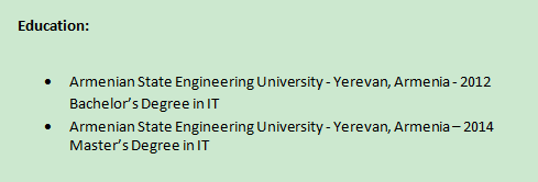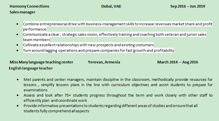 國籍: 亞美尼亞 求職意向: 教師