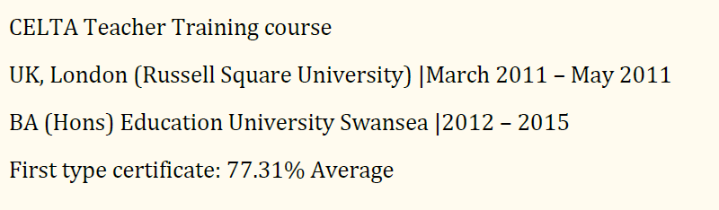國(guó)籍: 亞美尼亞 求職意向: 教師