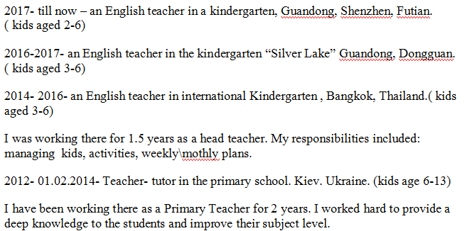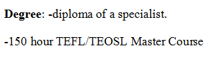 國籍: 俄羅斯 求職意向: 教師