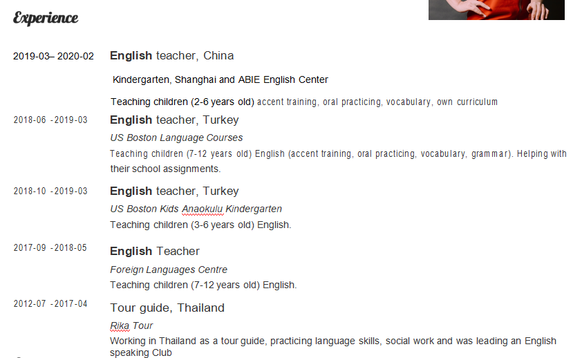 上海市幼稚園和ABIE英語中心 教兒童(2-6歲)口音訓(xùn)練,口語練習(xí),詞匯,自己的課程 土耳其 英語老師
