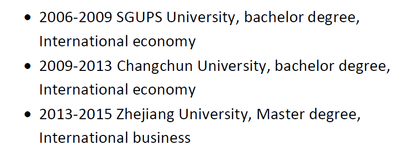學歷: 本科       期望薪資: 3000-4000(Yuan/M)