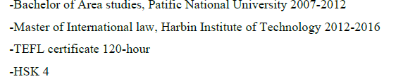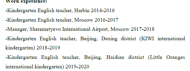 國(guó)籍: 俄羅斯       求職意向: 教師