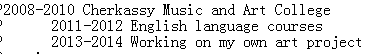 2008-2010切爾卡瑟音樂藝術學院 2011-2012年英語課程 2013-2014從事我自己的藝術項目 經驗 2014年-2015年-切爾卡瑟音樂學校 2016年-2017年-切爾卡瑟藝術學校 2018年-2019年-北京國際法語學校美術老師 有女朋友一起求職 |