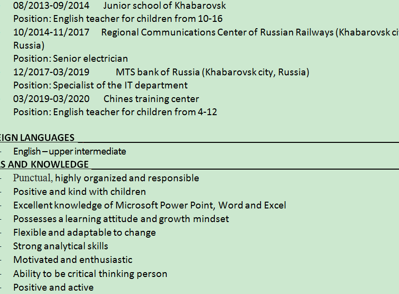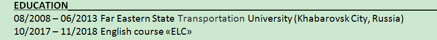 ?2013.08 - 2014.09哈巴羅夫斯克初中 |