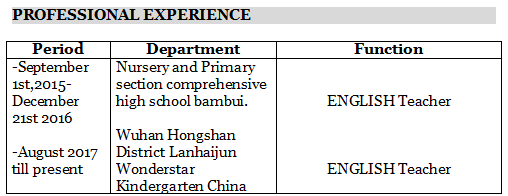 教育背景: TEFL 2019/4-2020/2 英語(yǔ)本科:2010-2013 教學(xué)經(jīng)歷: 托兒所小學(xué)高中綜合學(xué)校:英語(yǔ)老師 2015/9-2016/12 武漢幼兒園2017/8-現(xiàn)在:英語(yǔ)老師 會(huì)說(shuō)法語(yǔ) 會(huì)基礎(chǔ)漢語(yǔ) |