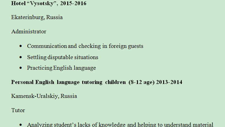 求職意向:我希望在英語教學領(lǐng)域(兒童優(yōu)先)獲得一份工作,以便運用我的教學技巧和外語知識。 |