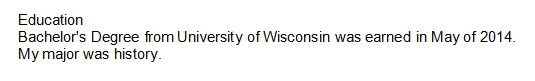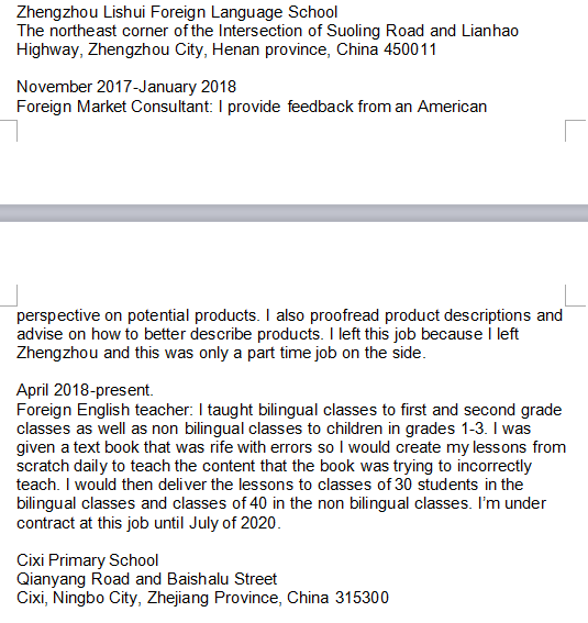 2014 歷史專業(yè) 本科 工作經(jīng)歷: 2017/2-2017/9:英語老師 芝麻街培訓 2017/10-2018/2:鄭州麗水外語學校 201//4-現(xiàn)在:英語老師 慈溪小學 |