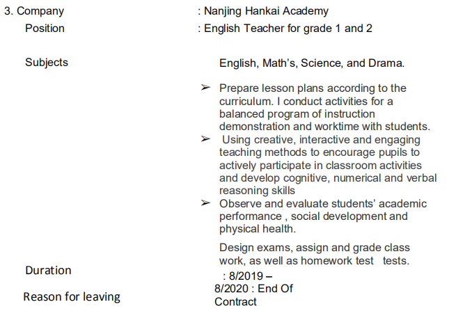 國籍: 其他 求職意向: 教師