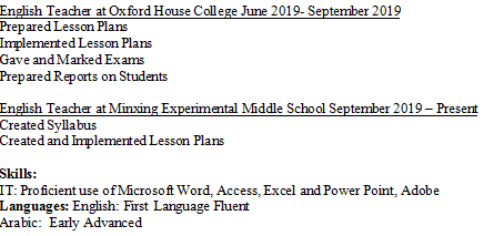 國籍: 其他 求職意向: 教師