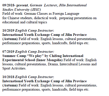 國籍: 德國 求職意向: 教師