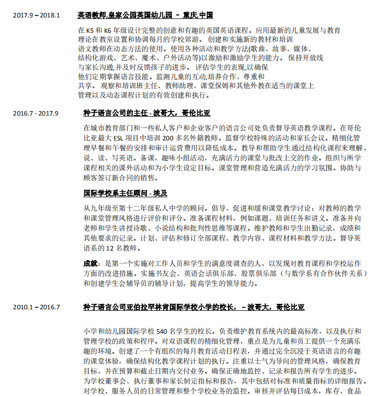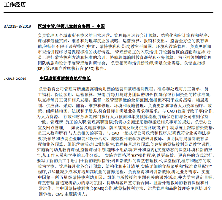 區(qū)域主管,伊頓兒童教育集團(tuán) – 中國(guó) 中國(guó)重慶某學(xué)校主管 英語(yǔ)教師,皇家公園英國(guó)幼兒園 – 重慶, |