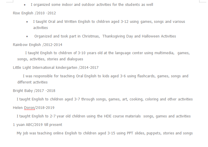 外教簡(jiǎn)歷