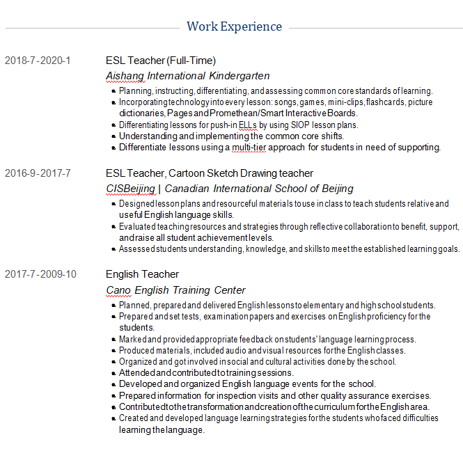 外教簡(jiǎn)歷