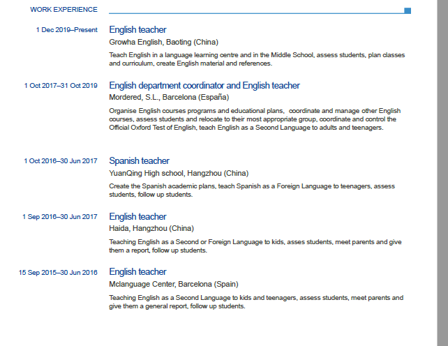外教簡(jiǎn)歷