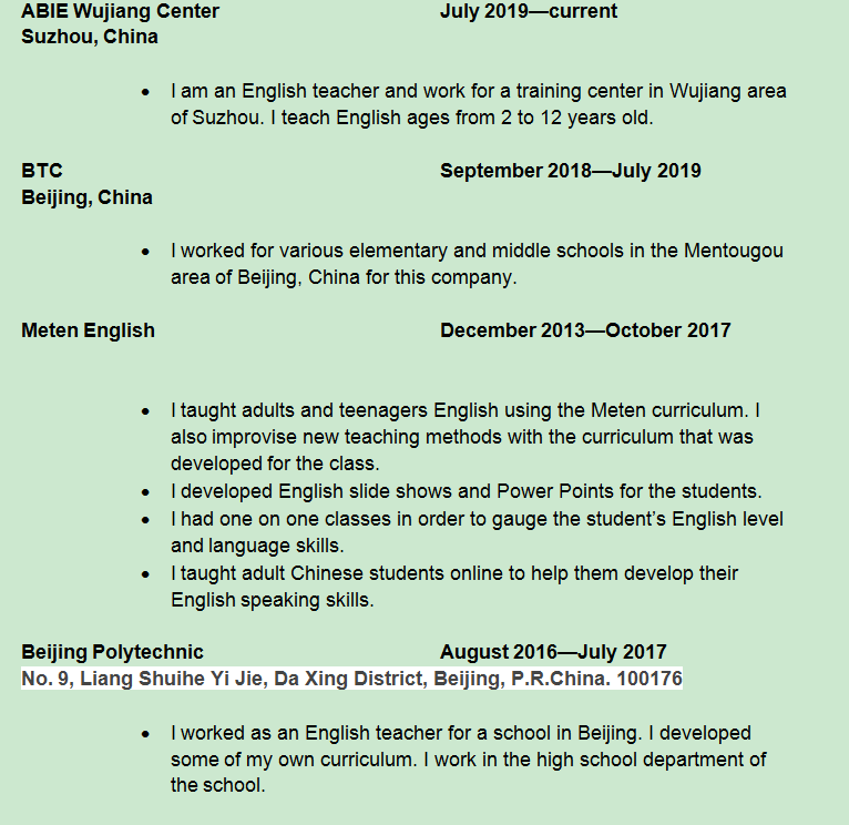 國籍: 其他 求職意向: 教師