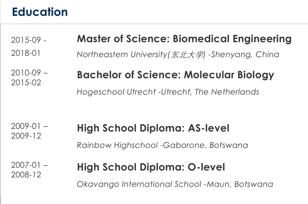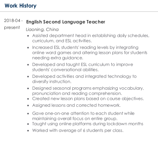 2018-04-當(dāng)下 英語(yǔ)第二語(yǔ)言老師 華美國(guó)際教育,遼寧葫蘆島 ?協(xié)助部門(mén)主管制定每日時(shí)間表, 課程和ESL活動(dòng)。 ?通過(guò)整合提高ESL學(xué)生的閱讀水平 在線文字游戲和學(xué)生改課計(jì)劃 需要額外的指導(dǎo)。 ?開(kāi)發(fā)和教授ESL課程以改進(jìn) 學(xué)生的對(duì)話能力。 ?開(kāi)展活動(dòng)和整合技術(shù),以 多樣化的教學(xué)。 ?設(shè)計(jì)季節(jié)性課程,強(qiáng)調(diào)詞匯, 發(fā)音和閱讀理解。 ?根據(jù)課程目標(biāo)創(chuàng)建新的課程計(jì)劃。 ?分配課程和更正的作業(yè)。 ?在學(xué)習(xí)的同時(shí)對(duì)每個(gè)學(xué)生進(jìn)行一對(duì)一的關(guān)注 保持對(duì)整個(gè)團(tuán)隊(duì)的整體關(guān)注。 ?在鎖定月份使用在線平臺(tái)進(jìn)行授課 ?每班平均有6名學(xué)生 2015-09-2018-01 理學(xué)碩士:生物醫(yī)學(xué)工程 東北大學(xué) 2010-09 –2015-02 理學(xué)學(xué)士:分子生物學(xué) 烏特勒支Hogeschool-荷蘭烏特勒支 2009-01 –2009-12 高中文憑:AS級(jí) 2007年1月–2008-12 高中文憑:O級(jí) |