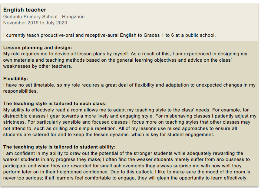 國(guó)籍: 津巴布韋 求職意向: 教師
