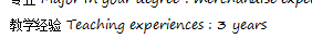 教育背景: 碩士 2010 教學(xué)經(jīng)驗(yàn):三年 |