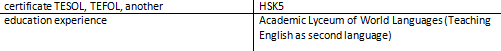 國(guó)籍: 烏克蘭 求職意向: 教師