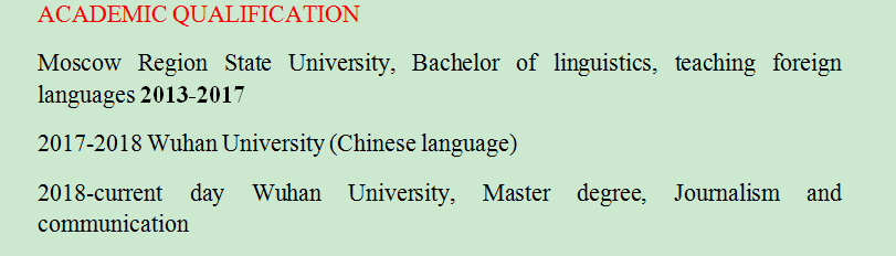 國(guó)籍: 俄羅斯 求職意向: 教師