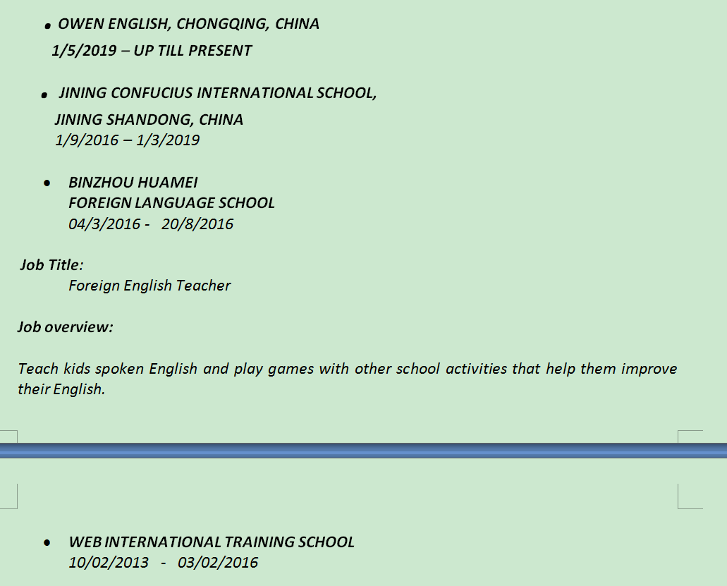 國(guó)籍: 津巴布韋 求職意向: 教師