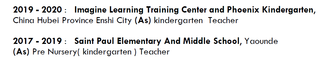 國籍: 加納 求職意向: 教師