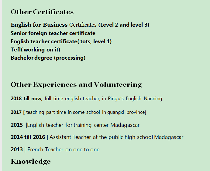 外教簡(jiǎn)歷