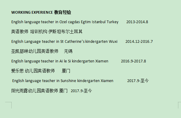 自我介紹,介紹6年教學(xué)經(jīng)驗,4年中國。很多地方教學(xué)經(jīng)驗--發(fā)音好